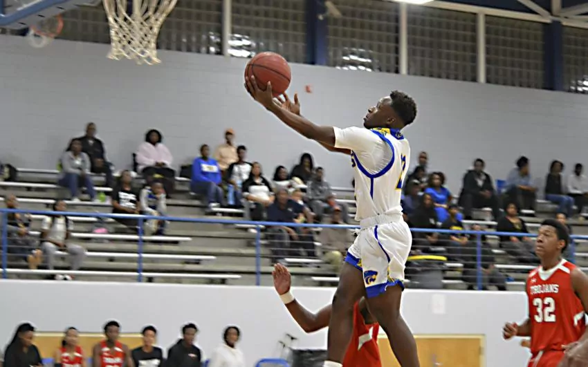 Pictured Above: Ziquae Amos, who had the game-winning layup against Jeff Davis Jan. 8, skies toward the basket against West Marion Jan. 7. | Photo by Joshua Campbell