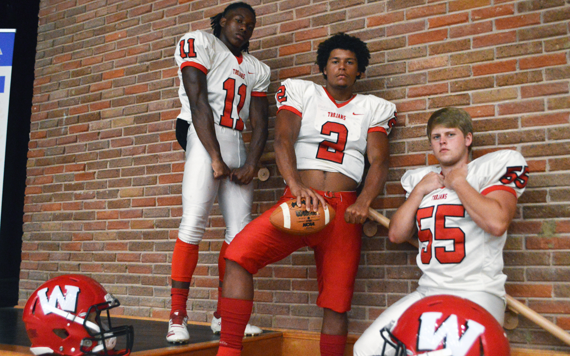 Pictured Above: From left, Jartavious "Tater Rabbit" Martin, Jeremiah Holmes and Josh Ham lead the Trojans into the 2019 season. | Photo by Joshua Campbell
