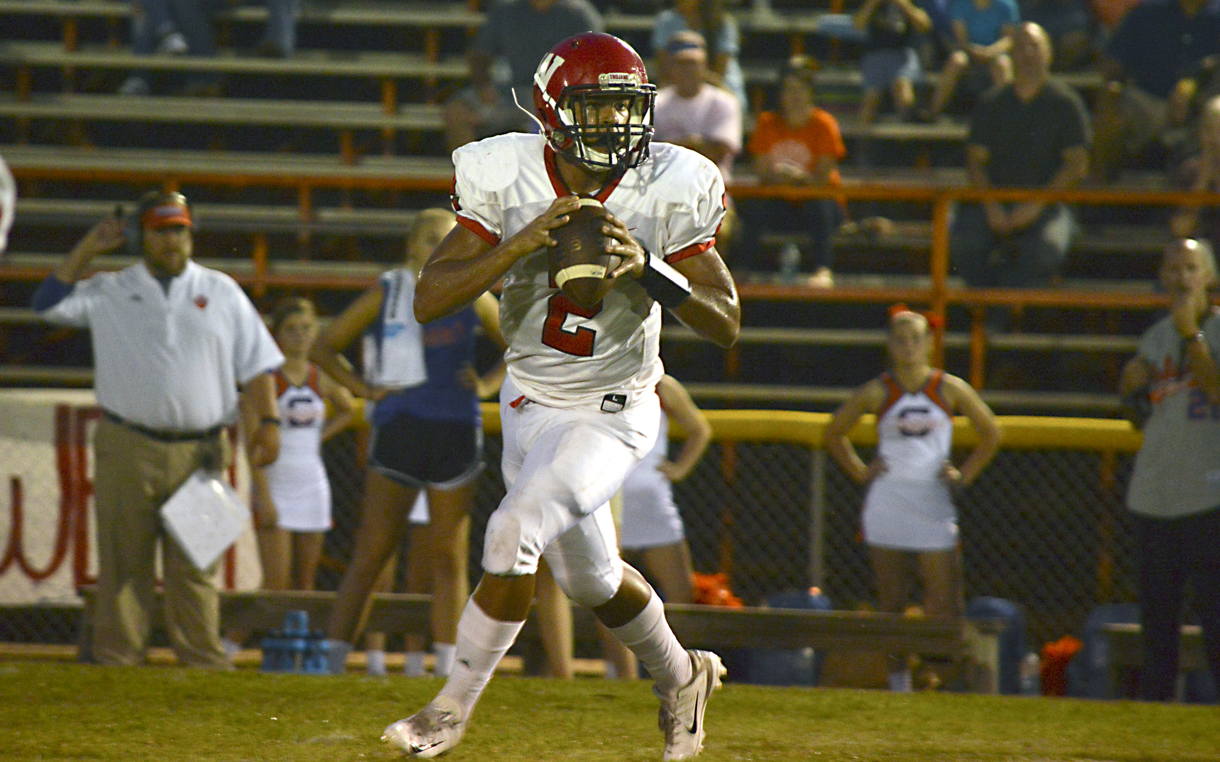 West Marion quarterback Jeremiah Holmes stole the show, completing 16-17 passes for 231 yards and three touchdowns and rushing for 37 yards and a touchdown. For the season Holmes is completing 69 percent of his passes with a 14-to-0 touchdown to interception ratio to go along with four rushing scores.