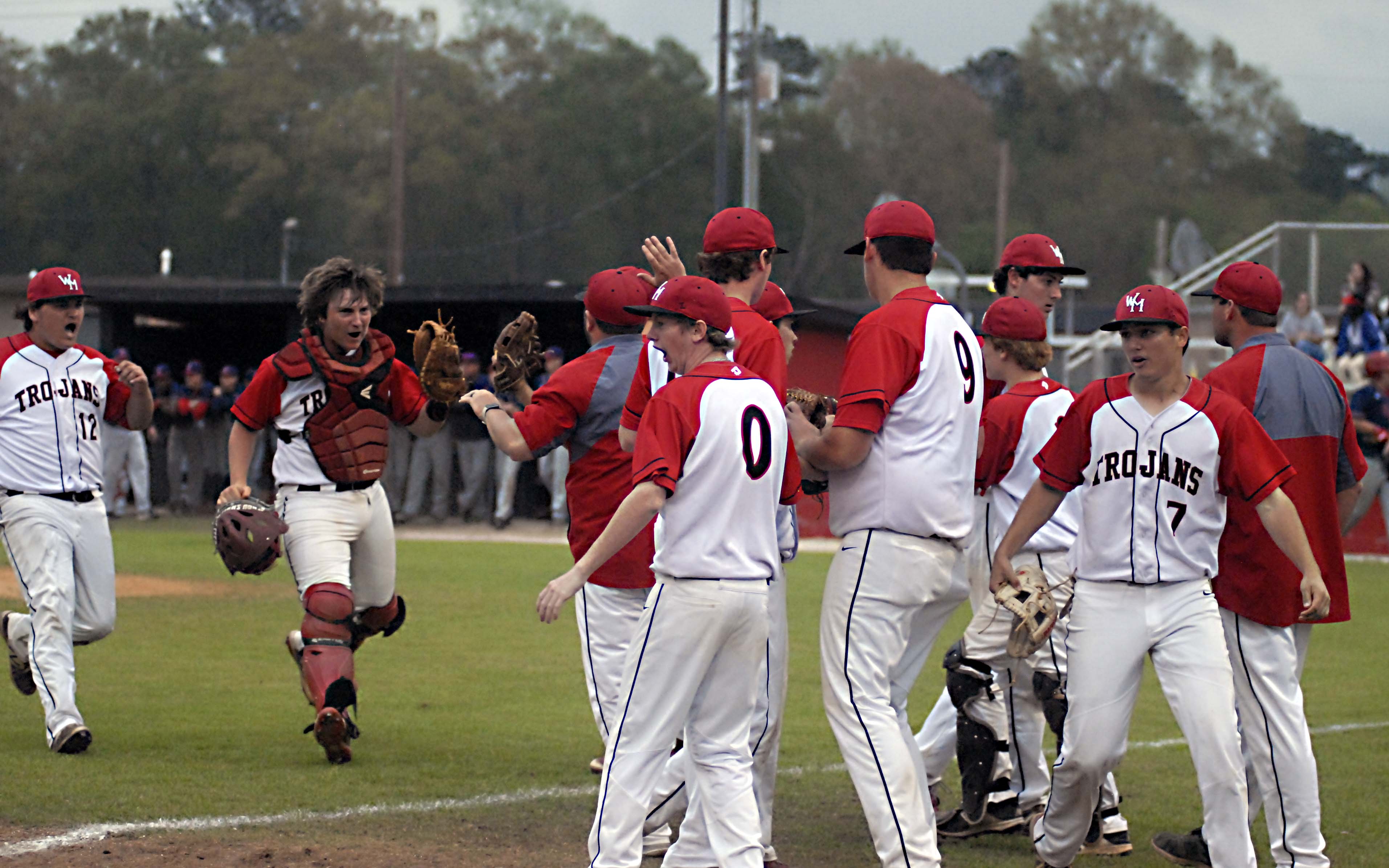 Pictured Above: West Marion players celebrate getting a crucial out to stop the threat of a big inning against Seminary. | Photo by Mark Rogers