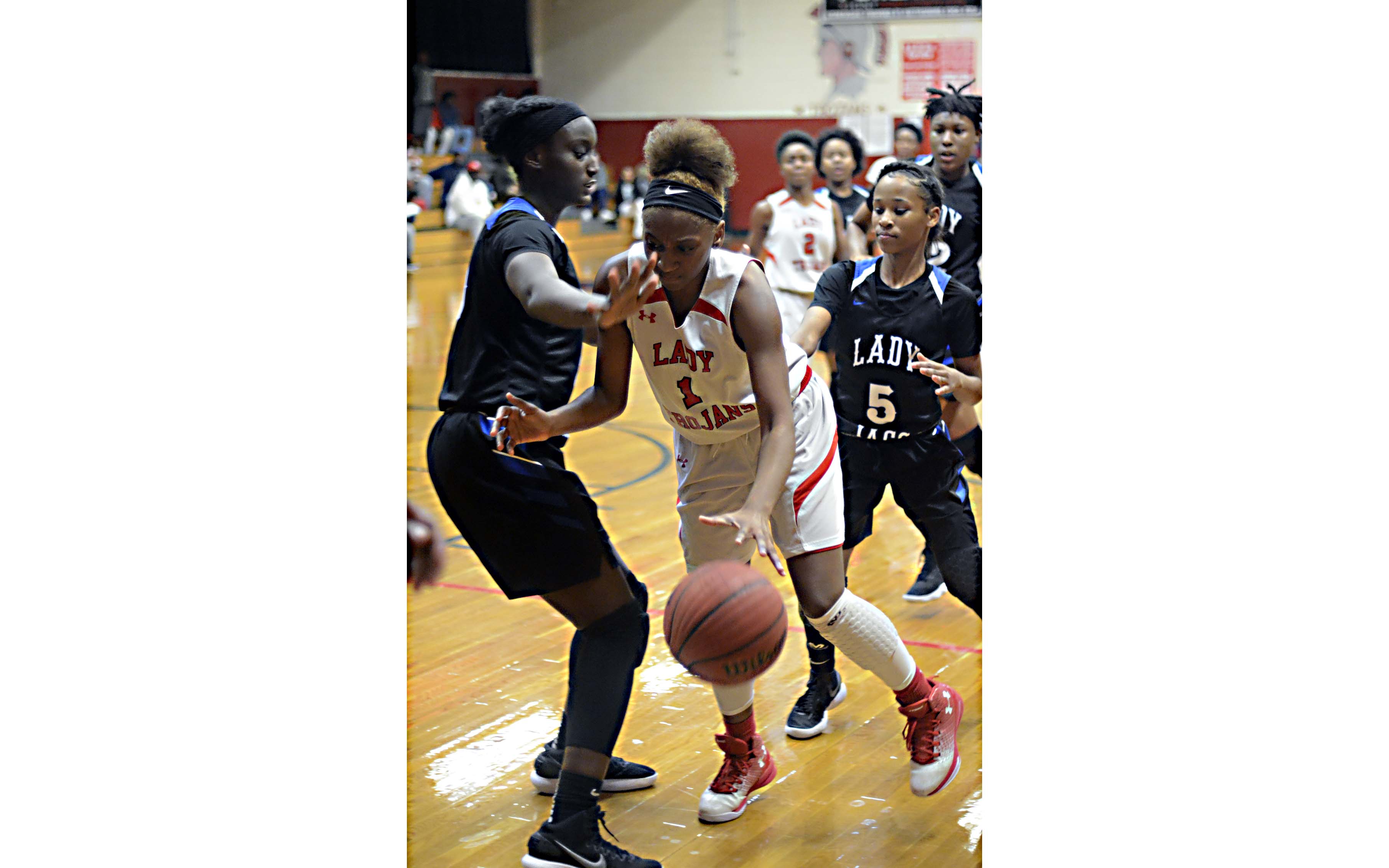 Shania Jefferson led the way with 17 points, followed by Keatra Harvey with 11 and Hannah Miller and Paris Andrews each had 10. Even more impressive was the sheer number of re-bounds the Lady Trojans hauled in — 79! — while Purvis had just 22. Shaniece Brady, who had six points, corralled a career-high 20 boards, while Andrews had 18 and Jefferson had 16.
