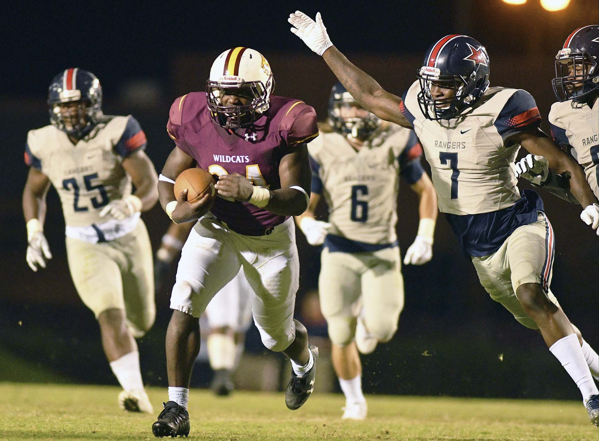 Pictured Above: Caleb Batie runs away from the Northwest Mississippi CC defense. | Photo by PRCC Sports Information