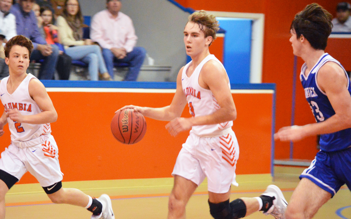 Pictured Above: Columbia Academy's Cody Fortenberry runs the floor in transition. | Photo by Joshua Campbell
