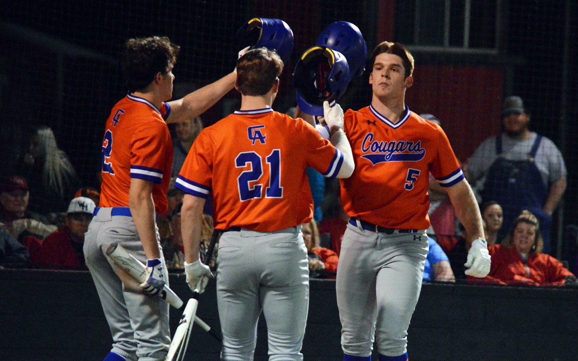 In Game 1, Robert Johnson led the Cougars with a three-run homer and a sacrifice fly for a 4-RBI day in a 13-3 CA victory.