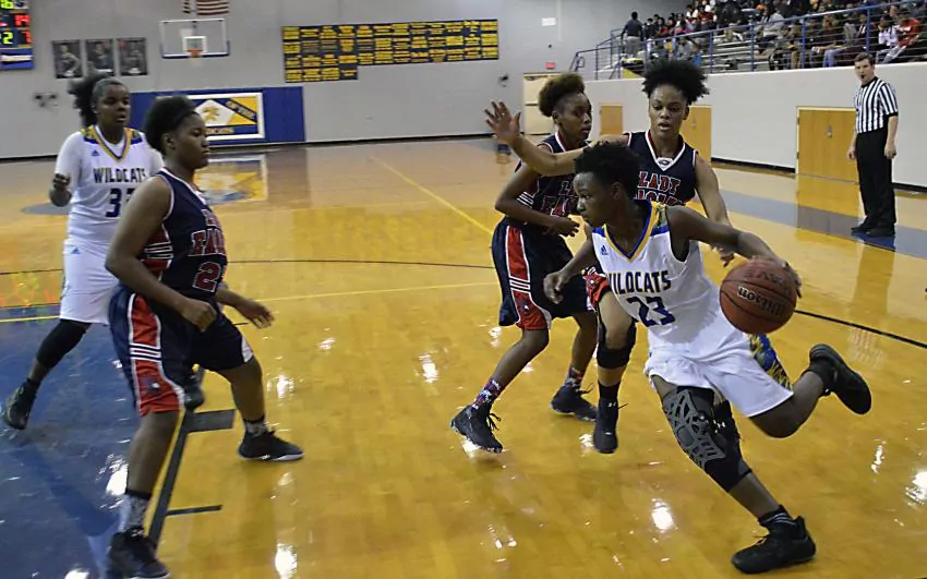 Last Friday night, the Lady Wildcats were able to press East Marion all night long on the defensive end, forcing 15 turnovers and holding the Lady Eagles to just 14 points over the final three quarters in a 46-25 contest.