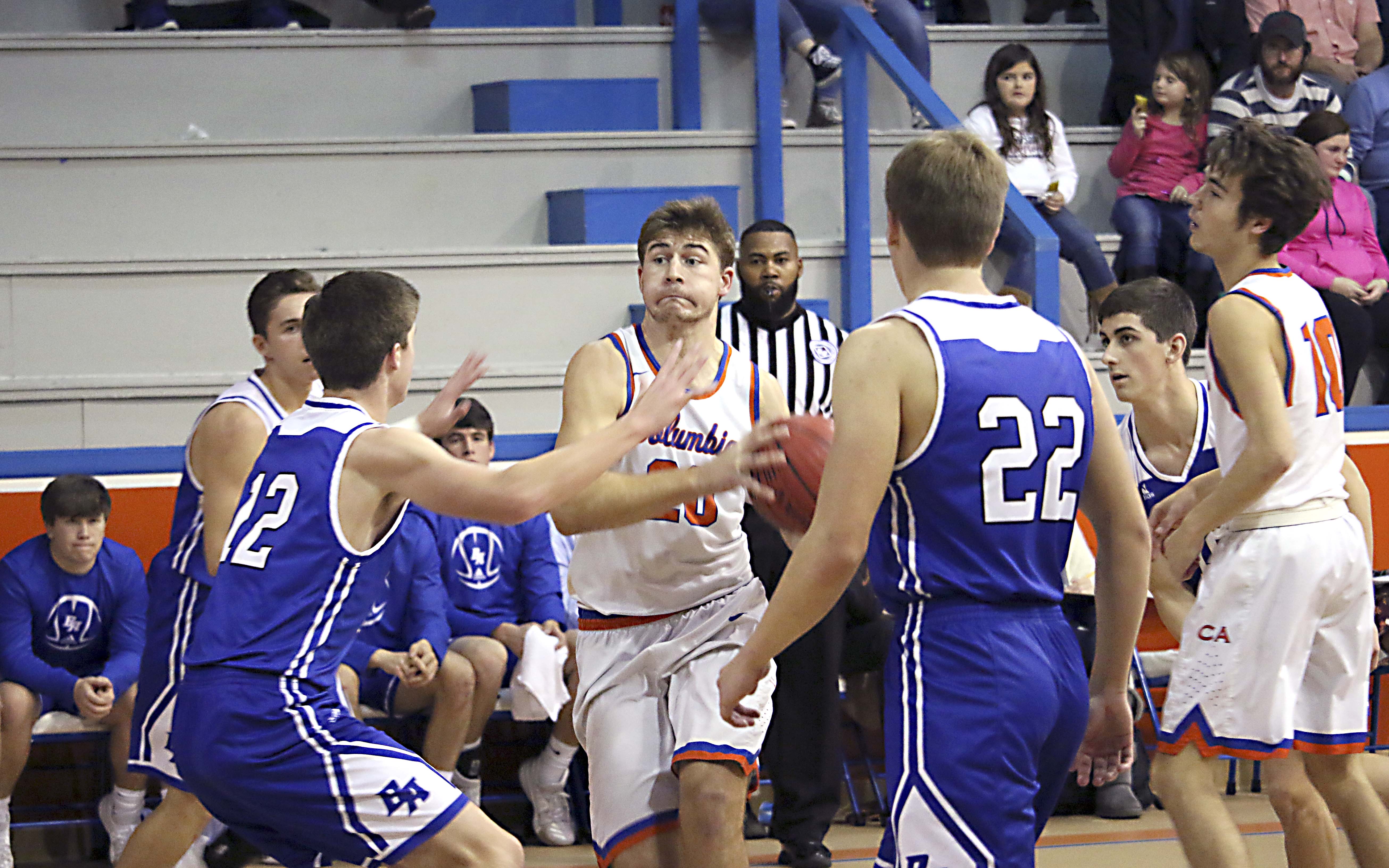 On the road last Thursday, the Cougars were able to outlast Simpson Academy in Magee, topping the host Cougars 48-41 behind Jay Stringer’s team-high 16 points. Owen Harper and Tate Duncan balanced out the Columbia Academy offense with nine points each.
