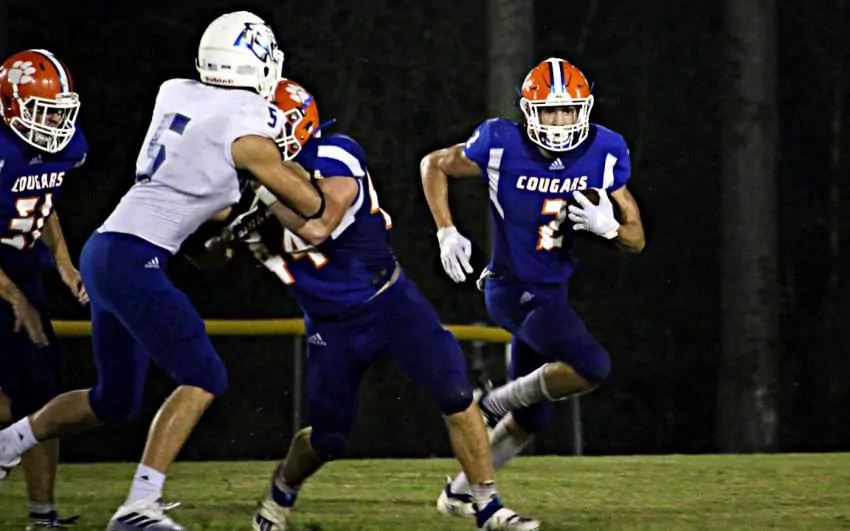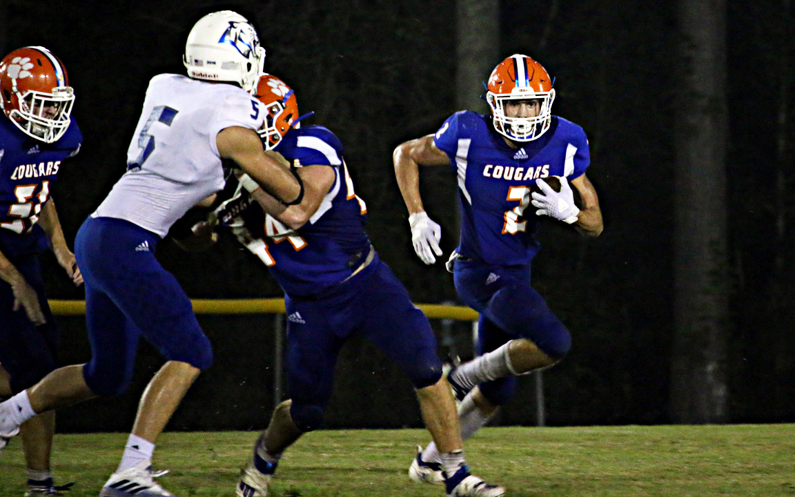 However, PCS scored once again on the first play of the ensuing drive with Crosby taking off for a 50-yard touchdown that increased the Bobcats lead to 49-14 late in the third quarter. The Cougars answered, though, with a 31-yard pass to Stringer preceding a 14-yard touchdown run by Ginn. The junior quarterback made four Bobcats miss on the play, three with one juke to find pay dirt and make it 49-22 with the two-point conversion.