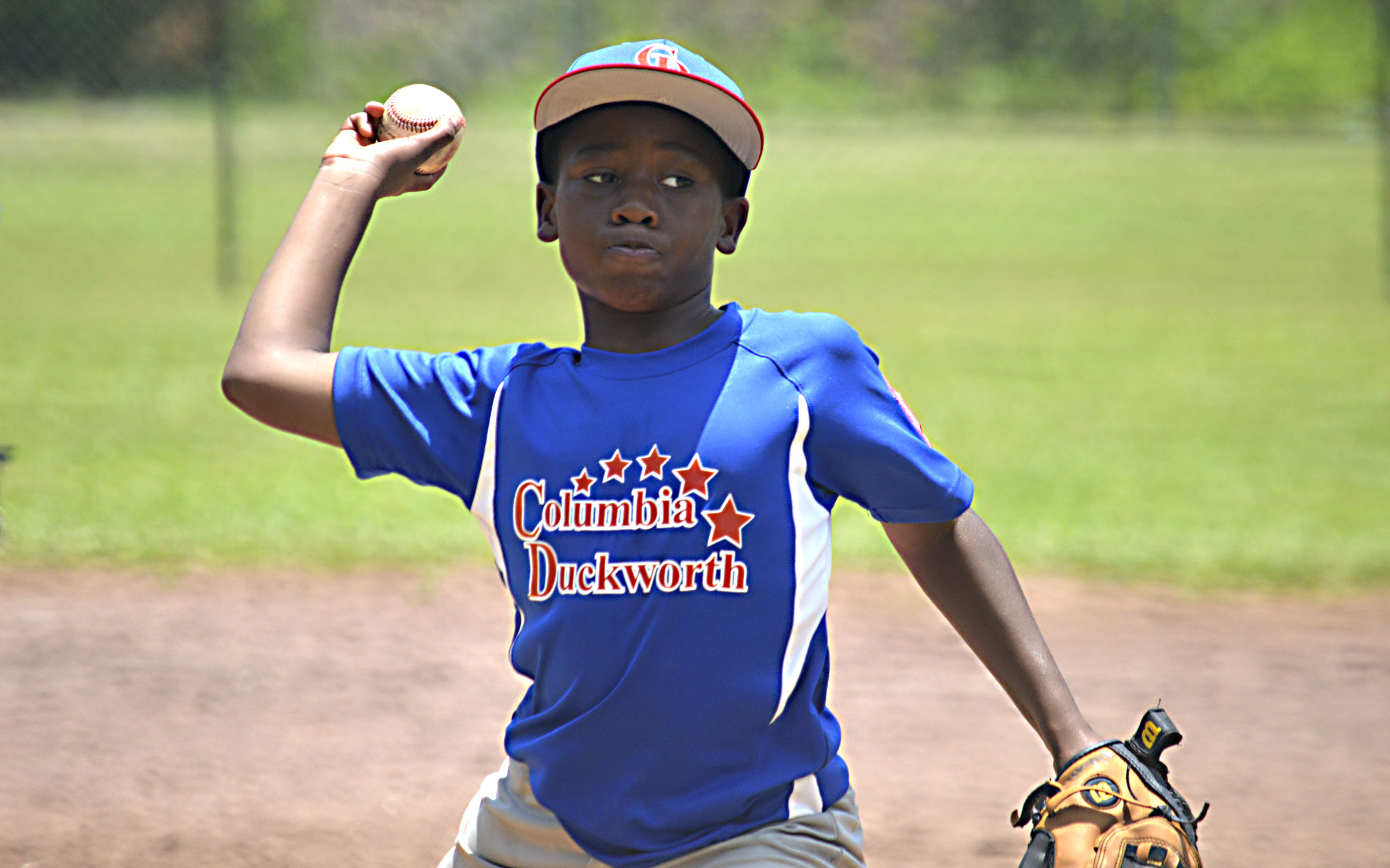 Pictured Above: Duckworth 10u all-star Brandon Thompson fires a fastball for a strike against Columbia 9u Saturday afternoon during sub-district play at Duckworth Park in Columbia. | Photo by Joshua Campbell