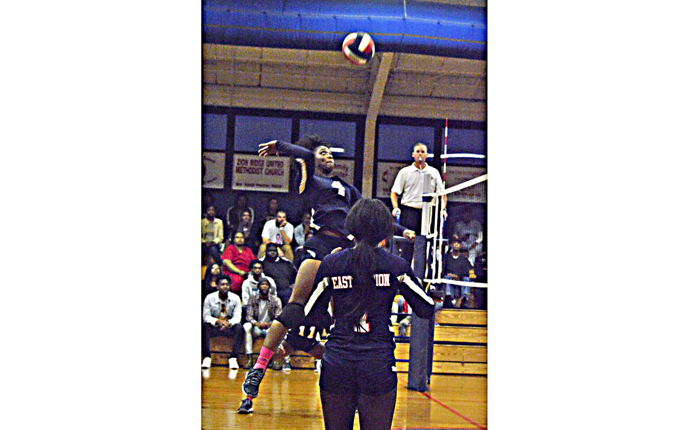 Pictured Above: Tytianna Porter skies for a spike against OLA. | Photo by Joshua Campbell