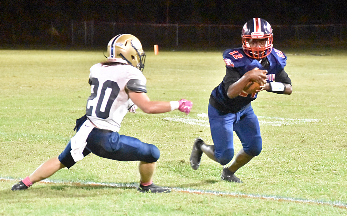 East Marion played three quarterbacks against Newton with Demetrius Allen starting and being pulled after one series, Ja’Quarious Jones getting a shot after showing off a nice arm out of the Wildcat last week and Leon Andrews, who has been the starter most of the season, finishing off the game.