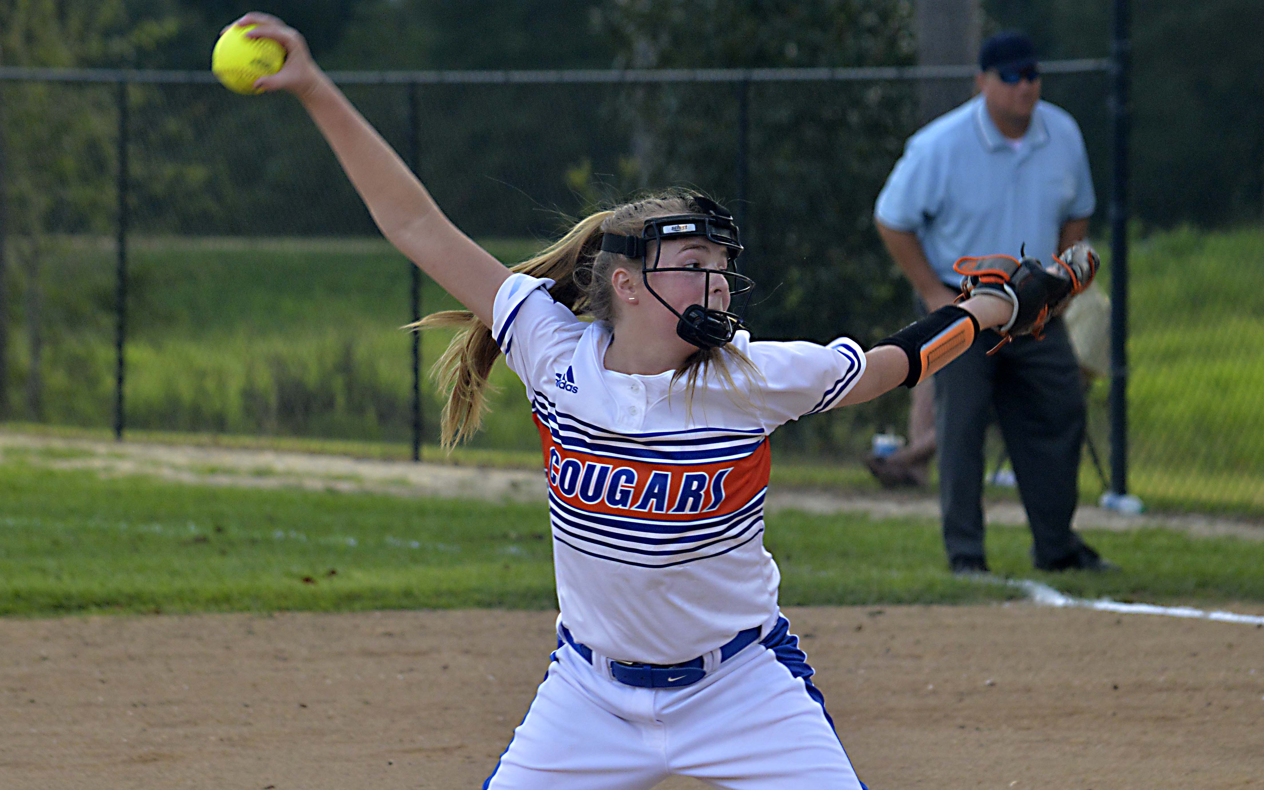 Pictured Above: Presley Dease delivers a pitch for the Lady Cougars in a 13-0 shutout win over Prentiss Christian. | Photo by Joshua Campbell