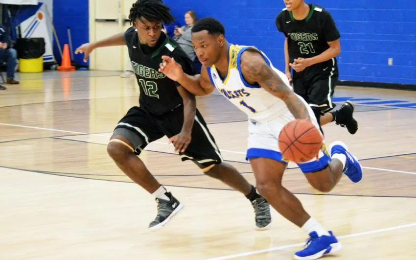 Pictured Above: Columbia's Kentrel Bullock breaks the press of a McLaurin defender Feb. 25 in the second round. | Photo by Joshua Campbell