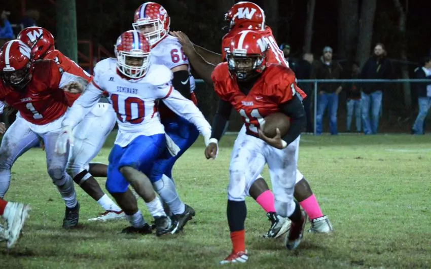 Pictured Above: West Marion's Jartavious "Tater Rabitt" Martin breaks into the open field against Seminary Friday. | Photo by Joshua Campbell