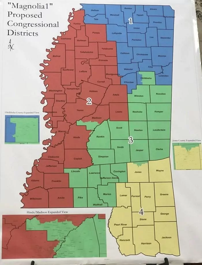 In addition, White said Guest wanted to maintain a Republican area of south Madison County in his district. A proposal offered by the state chapter of the NAACP would have moved all of Hinds and that portion of south Madison into Thompson’s district.