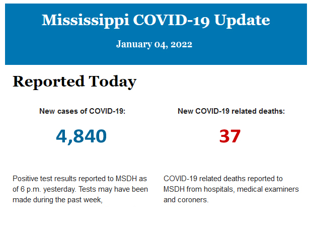Listed below is the daily COVID-19 update for the state of Mississippi.