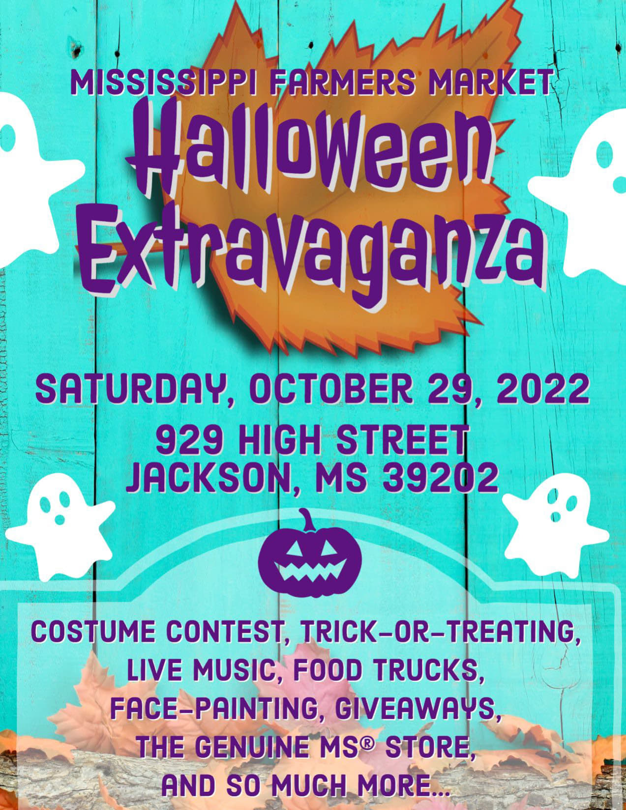 The Mississippi Farmers Market will host a Halloween Extravaganza on Saturday, October 29, from 8:00 a.m. until 1:00 p.m.