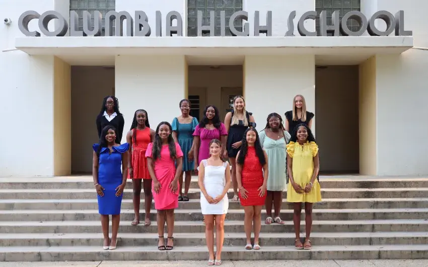 The 2025 Columbia High School Homecoming Court includes, front row, Queen Adrianna Williamson; second row, from left, Blue Football Maid Cayla Daniel, Maid of Honor Sydney Anderson, Maid of Honor Kaiya Magee and Gold Football Maid Nyasia Cain; third row Athletic Maid Raniyah Woodson, Activity Maid Gabby Sims and Academic Maid SyAra Franklin; back row, Senior Maid Jhene Lenoir, Junior Maid Diamond Henry, Sophomore Maid Ma'Kinley Brown and Freshman Maid Analeigh Baker.