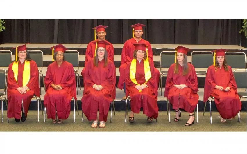 Adult education students at Pearl River Community College from Marion and Jeff Davis counties pose for a picture during their graduation May 21 at the Lake Terrace Convention Center in Hattiesburg. Front row, from left, are Stephanie Robertson, LaToya Green, Caitlyn Beach, Kayla Beard, Lacy Willoughby and Savannah Simmons.