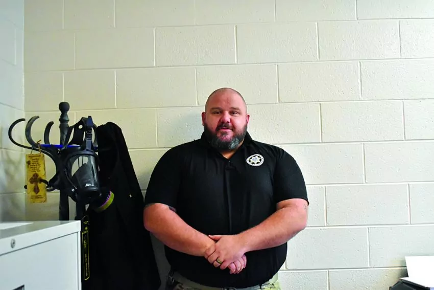 Volunteer firefighters speak at the Board of Supervisors meeting on Tuesday to discuss needed funding. Sitting around the table are, from left, Beat 5 Supervisor Calvin Newsom, Cole Robbins, Dewayne Stuckey, Thomas Ramos and Chancery Clerk Elisha Moree. | Photo by Susan Amundson