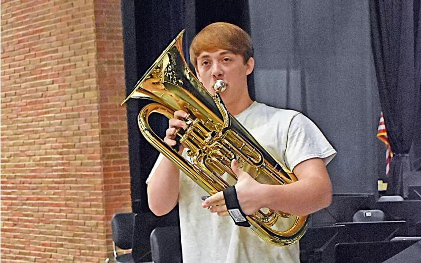 Members of the Columbia Fire Department stand with Melinda and Mike Lowery, as the Lowerys hold a check for $6,200 that will be handed over Saturday to St. Jude Children’s Research Hospital in Memphis. Every year the Lowerys travel to Memphis to take part in the 10K race to fundraise for the hospital. Pictured are, from left, Zachery Peak, James Givens, Melinda Lowery with Cash the golden retriever, Mike Lowery, Nathan Guy and Stephen Carr. Cash is a therapy dog, and his mother is the official therapy dog for St. Jude’s Hospital.