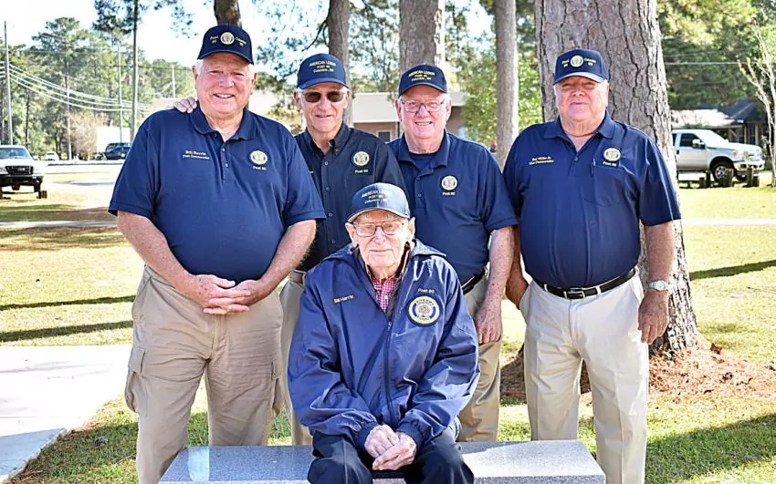 Wednesday morning, a group of U.S. Marine Corps veterans gathered at Seeds Restaurant to celebrate the 246th birthday of the United States Marine Corps. Proudly standing with the Marine Corps’ flag are, from left, Gary Campbell, W.C. Maples, Terry Anderson, Dewey Blansett, Mark Retcho, Lori Williamson, Donald Putman, George Brown, Lucky Martin, Gerald Rice, Bob Davis, Anthony Smith, Maurice Williams, Les Hendrickson and Chuck Junek. Davis served in World War II and will turn 94 years old in January. | Photo by Susan Amundson