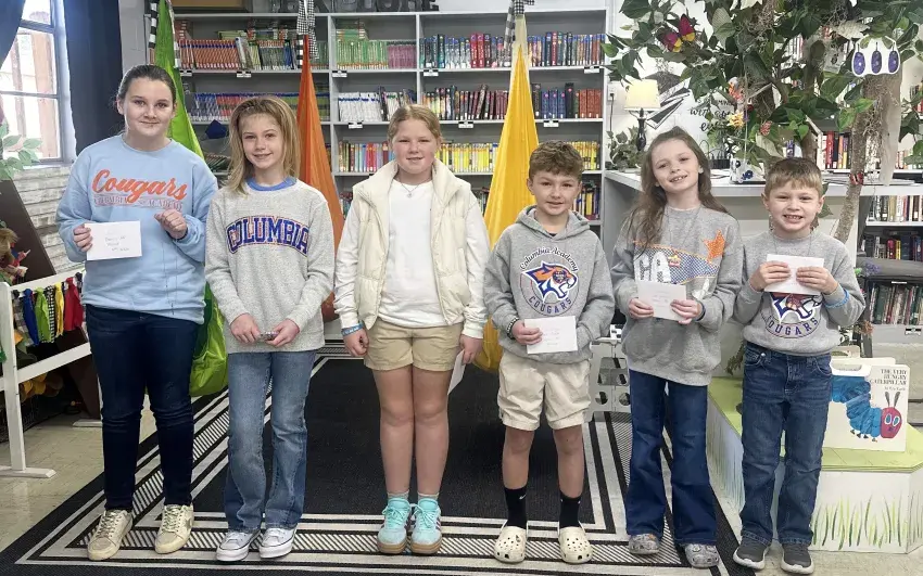 Columbia Academy’s top Accelerated Readers for the second nine weeks are, from left, Calla Till, sixth grade; Corinne Leary, fifth grade; Addie Robbins, fourth grade; Reed Tubbs, third grade; Saylor Coker, second grade; and Weston Thomas, first grade.