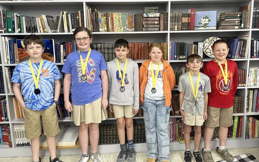 They include, from left, Walker Ward, first grade; Lane Stewart, second grade; Addie Robbins, third grade; Gunnar Midkiff, fourth grade; Sadie Daley, fifth grade; and Dean Dement, sixth grade.