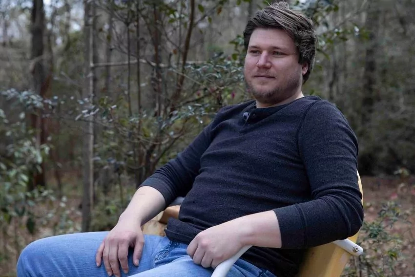 George and Dianne Sellers, seen here in their Quitman, Mississippi, home in April 2022, hold a photo of their son, Brad, who has been in and out of mental health facilities. Brad Sellers, 40, is diagnosed with schizophrenia and is charged with assault on a police officer. A psychiatrist has determined he’s incompetent to stand trial but could be restored to competency. Blair Parker Ballou/MCIR