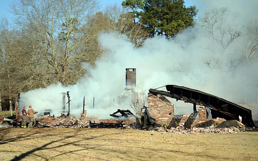 A structure fire that completely destroyed a home at 437 Old Highway 24 in Foxworth started in the laundry room as a set of sheets were drying Tuesday morning.
