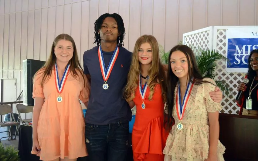 One student from each of the four high schools was presented with a scholarship from Mississippi State University for $500 annually when their names were drawn at random. The winners are Ella Watts, Phoenix Thompson, Aria Blackard and Ashlee Nicholson. | Photo by Beth Riles