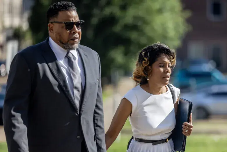 Dawn McLin, right, arrives at the Thad Cochran United States Courthouse in Jackson, Miss., on Tuesday, June 24, 2025, for a hearing tied to her federal lawsuit involving the Mississippi Board of Trustees of State Institutions of Higher Learning and JSU President Marcus Thompson. Credit: Eric Shelton/Mississippi Today