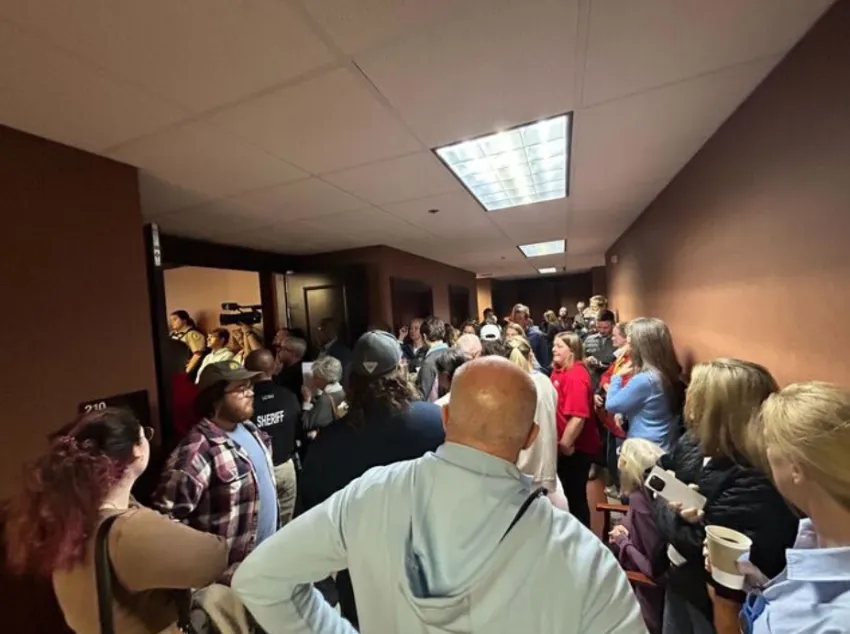Entrepreneurs from across the state, including Ricky Romanek with Claimtra (left) and Lena Horne, engagement manager with the Beanpath, share a light moment while attending an Innovate Mississippi incubator event held at the Capital Club to promote startup companies, Tuesday, Oct. 7, 2025 in Jackson. Credit: Vickie D. King/Mississippi Today