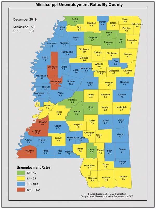 The county's unemployment rate remained at 5.4%, just above the state average of 5.3%.