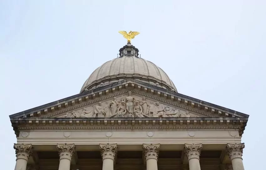 Mississippi House speaker Philip Gunn, center, and Lt. Gov. Delbert Hosemann, right, talk after Gov. Tate Reeves press conference at the State of Mississippi Woolfolk Building in Jackson, Miss., Thursday, May 7, 2020. Credit: Eric J. Shelton/Mississippi Today