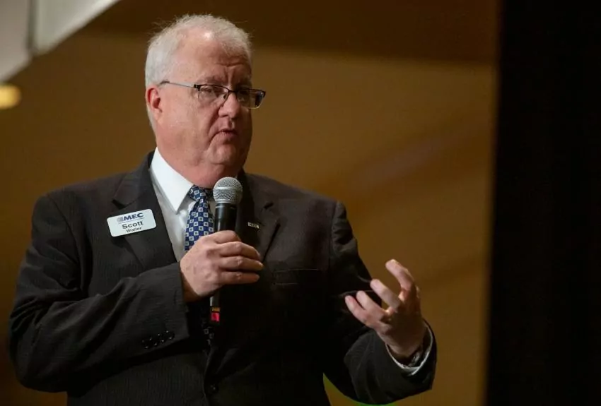 Tony Engle(left) with hemp seed producer GeneSeed in Tennessee and hemp farmer David Singletary examine plant growth at Singletary's farm in Florence, Tuesday, August 3, 2021. Hemp contains cannabidiol (CBD), which does not produce the high associated with tetrahydrocannabinol (THC), in its cousin marijuana. Credit: Vickie D. King/Mississippi Today