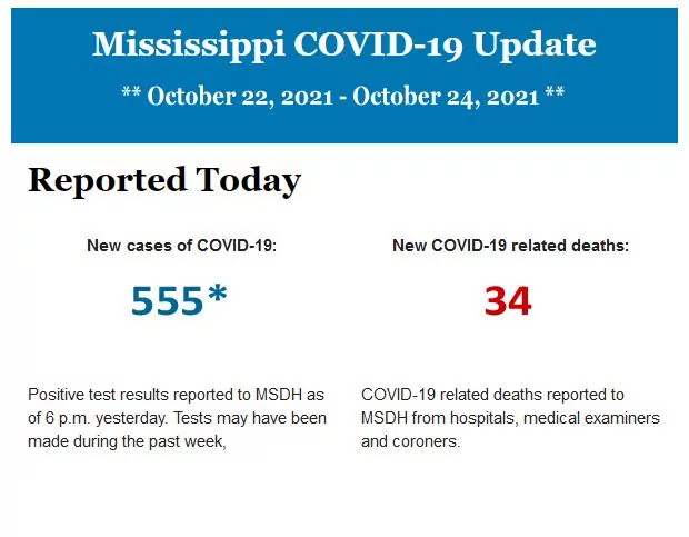 Listed below is the daily COVID-19 update for the state of Mississippi.