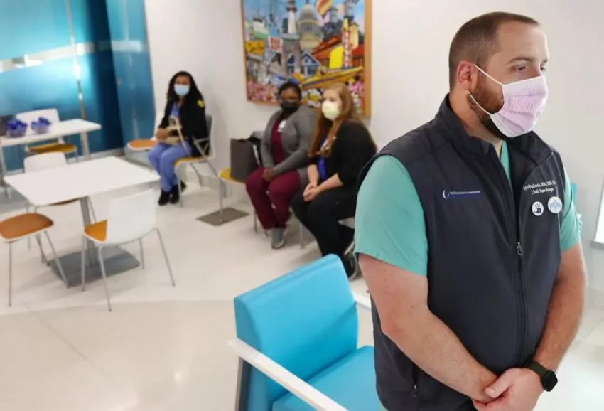 Tyler Fitzgerald, nurse manager, talks about University of Mississippi Medical Center's walk-up nursing and respiratory therapy job interviews, at UMMC's Kathy and Joe Sanderson Tower in Jackson, Miss., Monday, May 16, 2022. Credit: Eric Shelton/Mississippi Today