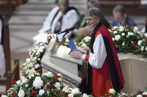 WASHINGTON (AP) — President Donald Trump on Wednesday demanded an apology from the Episcopal bishop of Washington after she made a direct appeal to him during a prayer service marking his inauguration to have mercy on the LGBTQ+ community and migrant workers who are in the United States illegally.