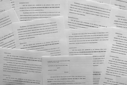 Prosecutors unsealed the indictment against the former president Tuesday, giving Trump, his lawyers and the world their first opportunity to see them. Trump was charged with 34 counts of falsifying business records in the first degree. Prosecutors said Trump conspired to undermine the 2016 presidential election by trying to suppress information that could harm his candidacy, and then concealing the true nature of the hush money payments. The payments were made to two women — including a porn actor — who claimed they had sexual encounters with him years earlier, and to a doorman at Trump Tower who claimed to have a story about a child Trump fathered out of wedlock, according to the Manhattan district attorney's office.