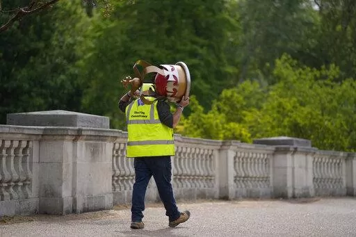 LONDON (AP) — Britain is getting ready for a party featuring mounted troops, solemn prayers — and a pack of dancing mechanical corgis.