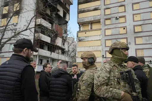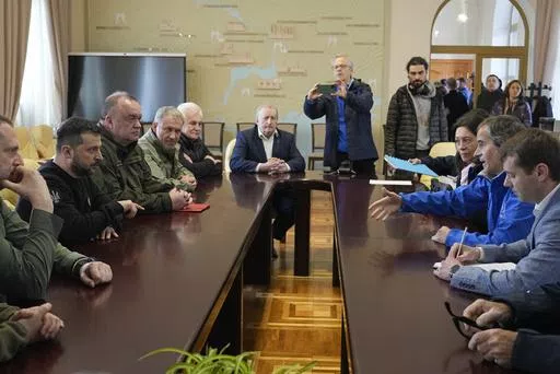 This week, Zelenskyy shuttled across the country on a 48-hour train trip to rally soldiers who are battling Russian forces — and, just as important, to buoy the communities often caught in the crossfire. Here, about 30 miles (50 kilometers) from the front lines, Zelenskyy came to see for himself the destruction from a Russian attack that damaged dozens of apartments one week ago.