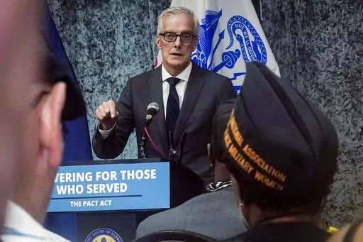 Veterans Affairs Secretary Denis McDonough said his agency is doing better than expected based on internal projections and is using new technology to process claims faster.