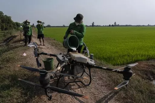 Using the drone to fertilize the crops saves on labor costs. With climate shocks pushing a migration to cities, Van said that it's harder to find people to work the farms. It also ensures precise amounts of fertilizers are applied. Too much fertilizer causes the soil to release Earth-warming nitrogen gases.