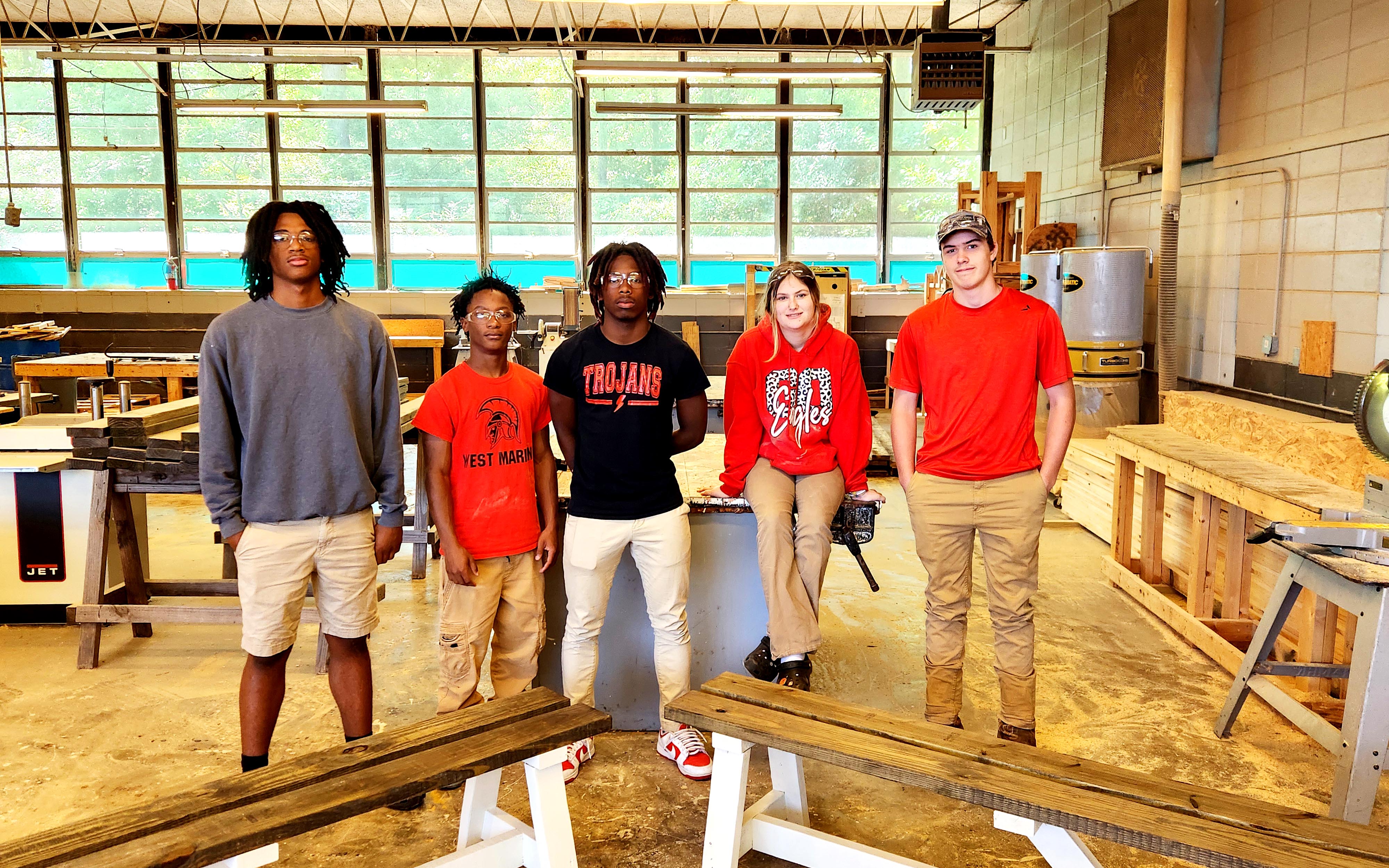 Under the guidance of their instructor Bryan Porter, the students applied techniques learned in class—measuring, cutting, sanding, and finishing—to create sturdy, attractive benches. Each bench reflects the craftsmanship of the students, showcasing precision and creativity.