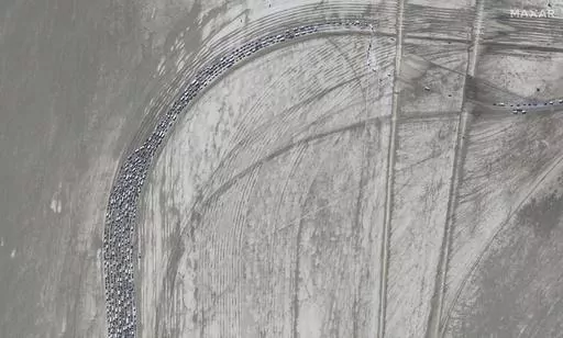 BLACK ROCK DESERT, Nev. (AP) — Wait times for tens of thousands of Burning Man partygoers trying to exit the mud-caked northern Nevada desert are beginning to decrease after flooded roads left them stranded there for days.