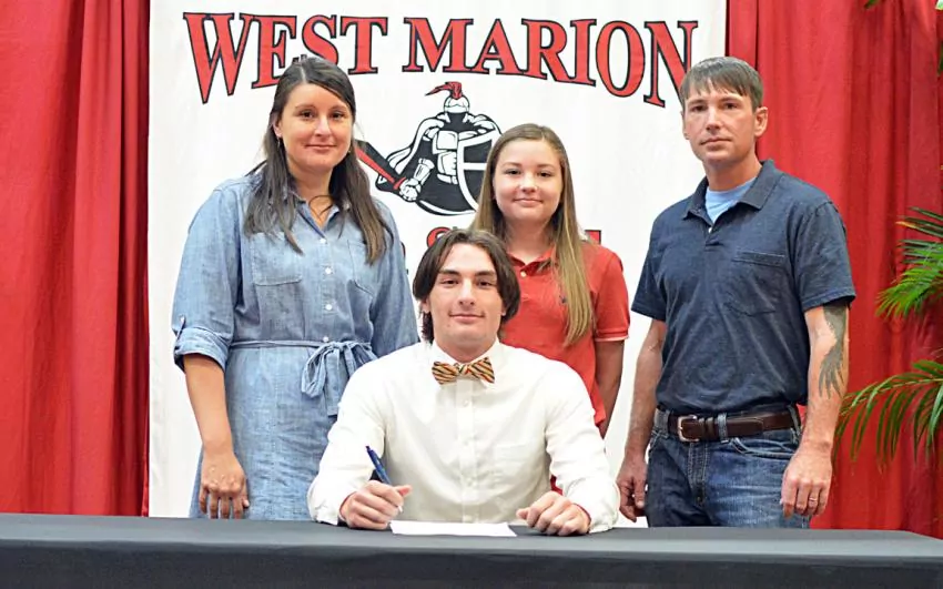 West Marion senior Mason Parrett became the third Trojans baseball player to sign a scholarship Tuesday morning, inking a letter of intent to play at Hinds Community College next year.