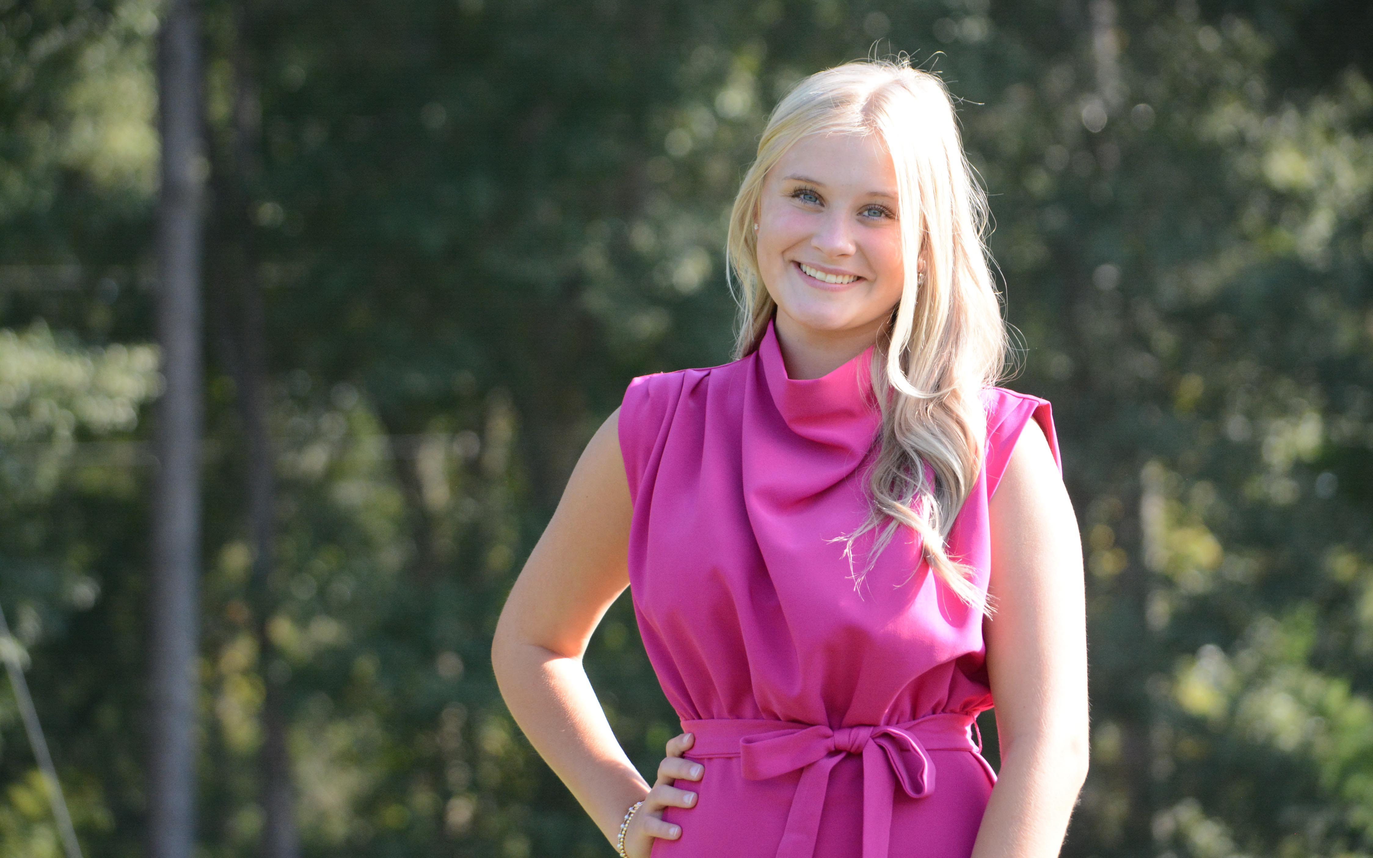 Maci resides in the Foxworth Community and attends Oakvale Baptist Church. She is an active member of the youth group, the choir, and a member of ACTeens. She is the vice president of Future Farmers of America, a member of National Honor Society and a member of the BETA Club. She has completed the Artificial Insemination School for beef and dairy cattle at Mississippi State University and received her certification of completion. Maci enjoys spending time with her family and friends. She loves being around her cows, at the river and going on youth trips. Maci chose a pink dress in honor of her Mawmaw, Vanya, who is currently battling breast cancer.