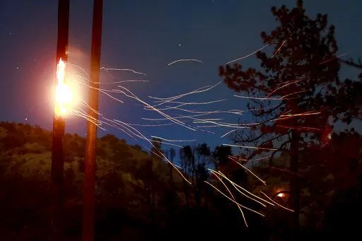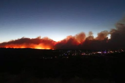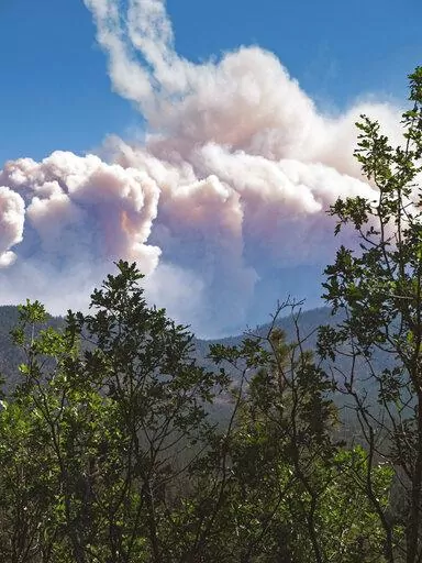 “The fuel is very dry, so it acts like a ladder, carrying flames from the bottom of the trees to the very top,” Dierkes said. Crews were also contending with unpredictable winds that were expected to strengthen later in the day, she said.