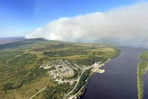 The lightning-sparked fire is estimated at about 193 square miles (500 square kilometers). It's burning dry grass and shrubs in southwest Alaska's mostly treeless tundra.