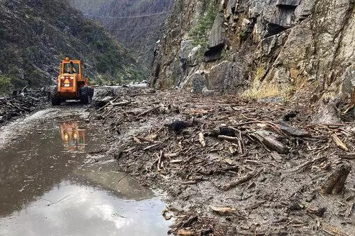 In Northern California, a 50-mile (80-km) stretch of State Route 70 was closed indefinitely on Monday after mud, boulders and dead trees inundated lanes during flash floods along a wildfire burn scar.